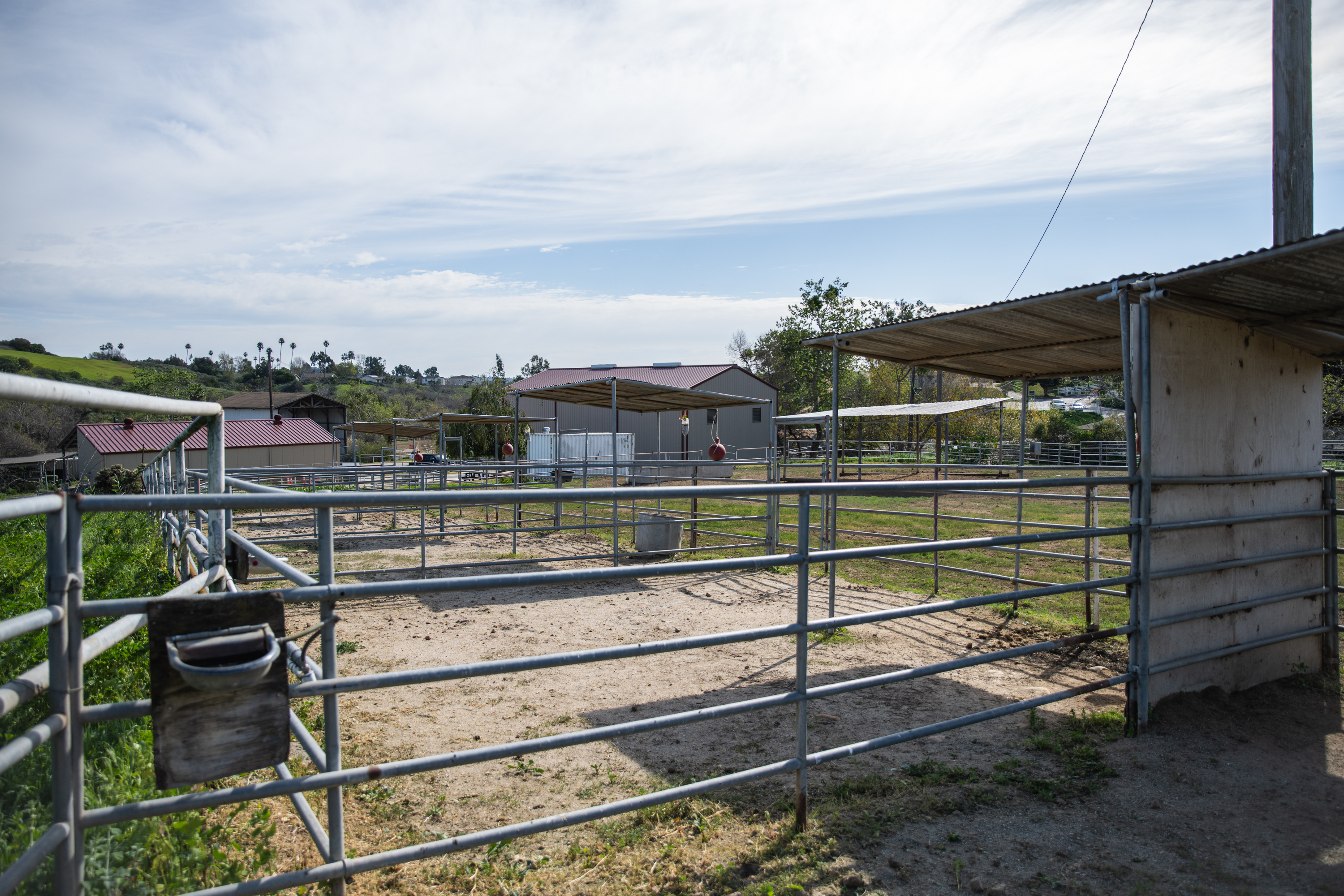 Stalls are constructed of pipe corrals with metal roofs and dirt floors, surrounded by wide dirt aisleways that act as fire breaks. In the event of a fire, it may be safest to leave your horse in its stall. Ensure each horse has a halter and lead rope labeled with your name and phone number to assist emergency personnel during evacuations. - Water & Access Limitations